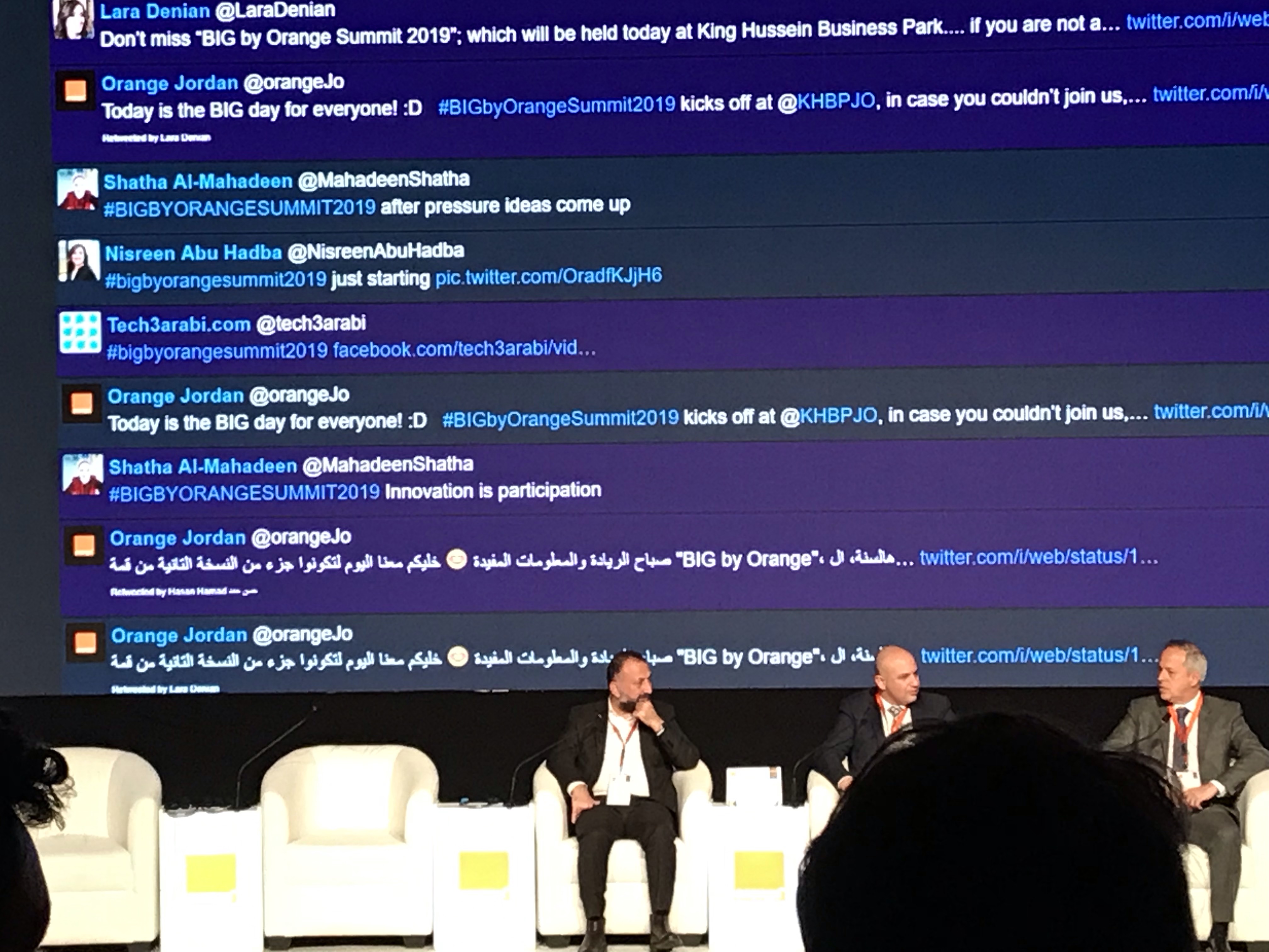 تعقد شركة اورانج حاليا قمة BIG by Orange summit 2019 للمرة الثانية تحت رعاية معالي وزير الاتصالات الأردني المهندس مثنى غرايبة بالنيابة عن دولة رئيس الوزراء الدكتور عمر الرزاز بعنوان تأثير الشركات الناشئة على الاقتصاد الأردني في مجمع الاعمال
